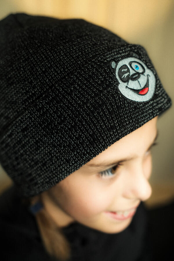Gleich drei neue Kopfbedeckungen stehen den Kids jetzt zur Auswahl. Neben den neuen schwarz-weißen Baseballkappen mit und ohne Panda-Öhrchen wird eine neue reflektierende Beanie-Kindermütze angeboten. Im Hinblick auf die bestmögliche Sichtbarkeit der jungen Trägerinnen und Träger der KAS-Beanies wurden in das Gewebe der Mütze stark reflektierende Fasern eingearbeitet. So wird in der Dunkelheit die Aufmerksamkeit der heranfahrenden Verkehrsteilnehmer geweckt.