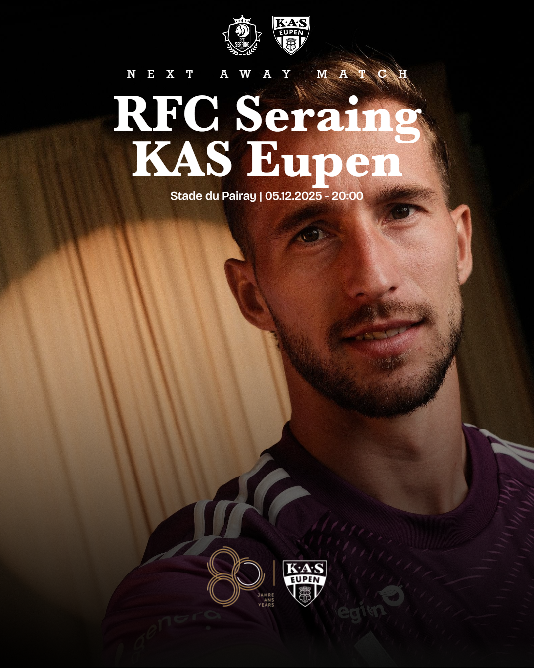 An diesem Freitag, dem 5. Dezember, bestreitet die KAS Eupen um 20:00 Uhr das Derby beim RFC Seraing. Für die Begegnung des 16. Spieltages der Challenger Pro League gilt die Kombi-Regelung Bus-Stadion. Somit können die Fans der KAS Eupen nur mit dem Fanbus anreisen.